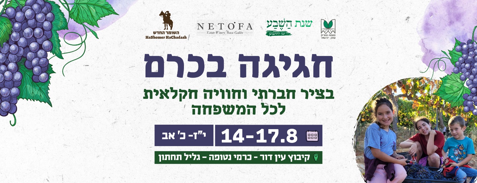 • 16:00-18:30 בציר ענבים ידני בכרם נטופה